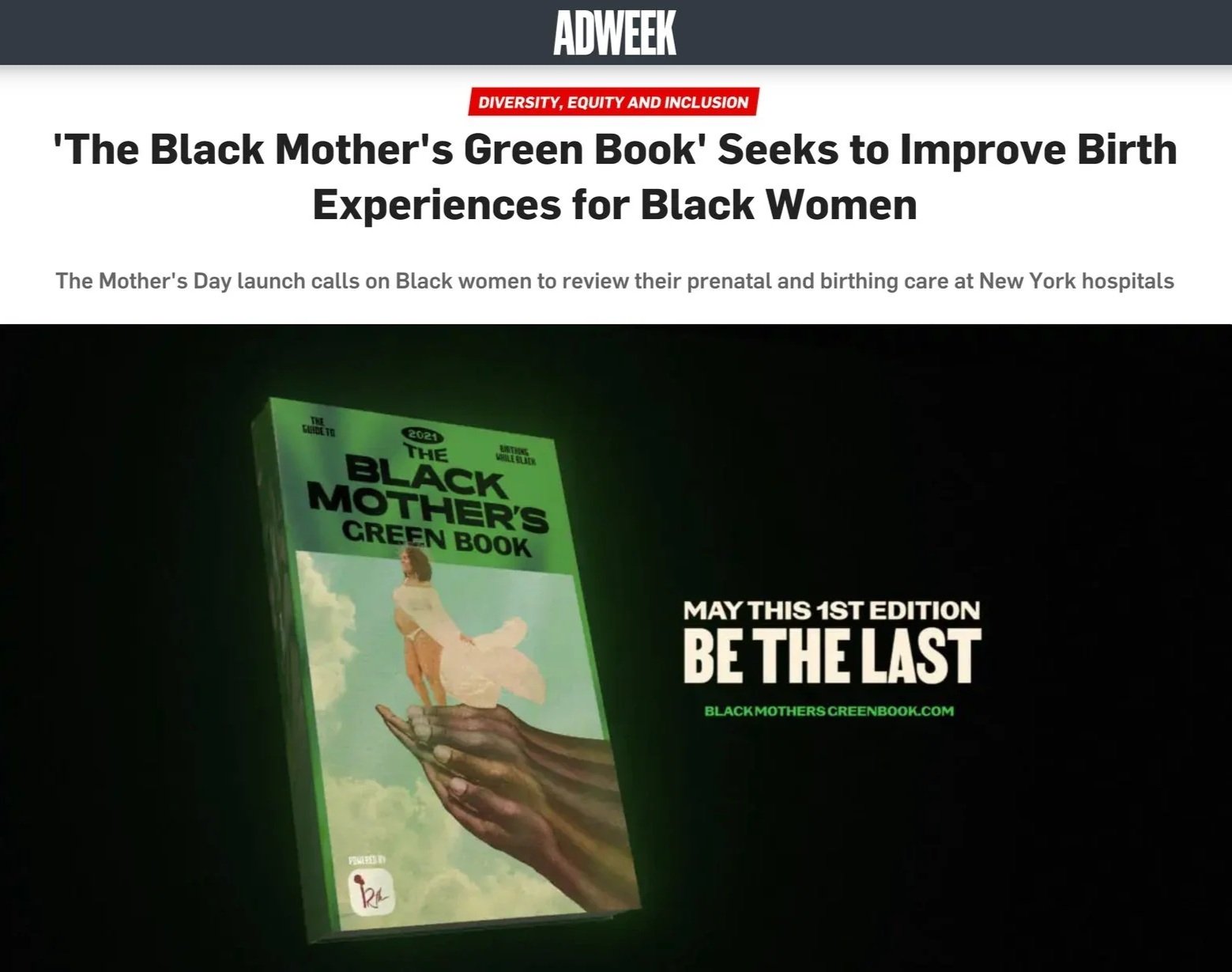 For Mother’s Day, Mother NY partnered with IRTH (as in birth, without the B for bias) to create The Black Mother’s Green Book, a free maternity care guide made for and by Black Mothers to fight bias - because in NYC, Black mothers are 12 times more likely to die from childbirth than white mothers.
